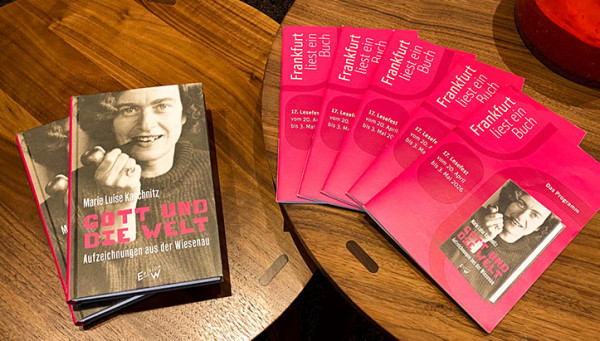 Wir sind dem Lesefest "Frankfurt liest ein Buch" seit vielen Jahren verbunden und unterstützen es gerne. In diesem Jahr dreht sich vom 20. April bis 3. Mai 2026 alles um das Buch "GOTT UND DIE WELT Aufzeichnungen aus der Wiesenau" von Marie Luise Kaschnitz.